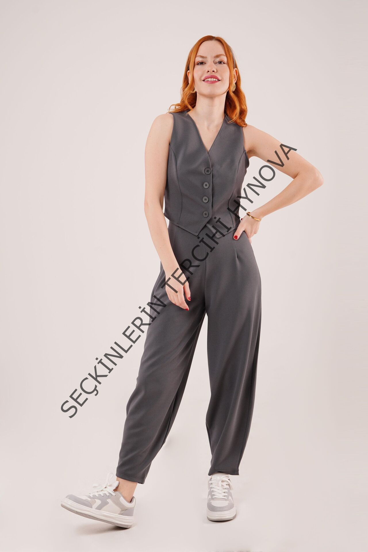 Önü Düğmeli Gri Yelek