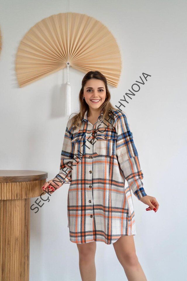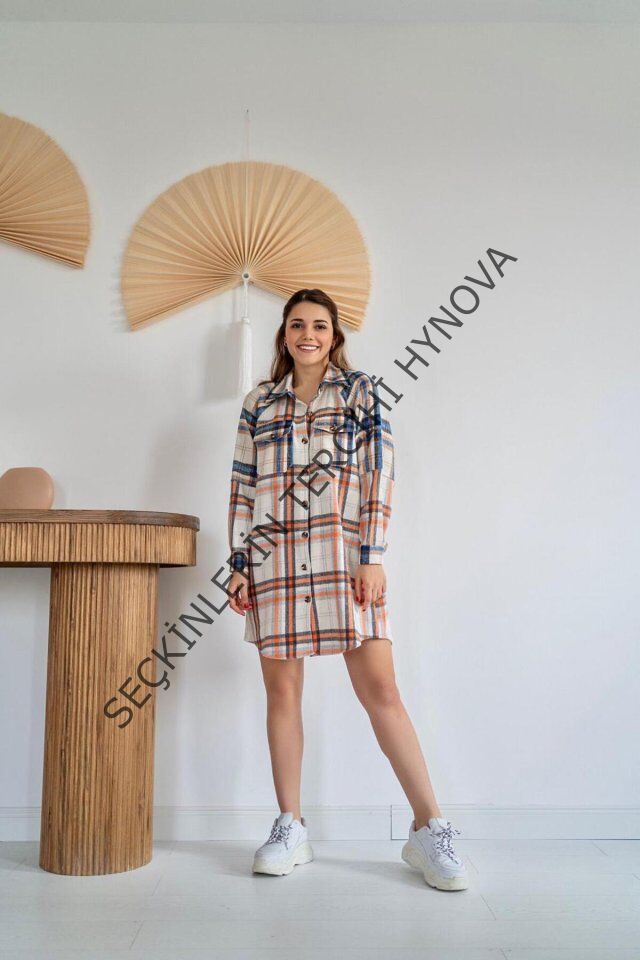 Oranj Oduncu Gömlek Elbise