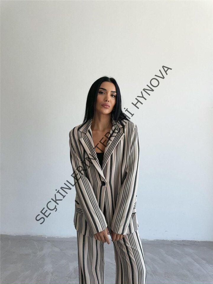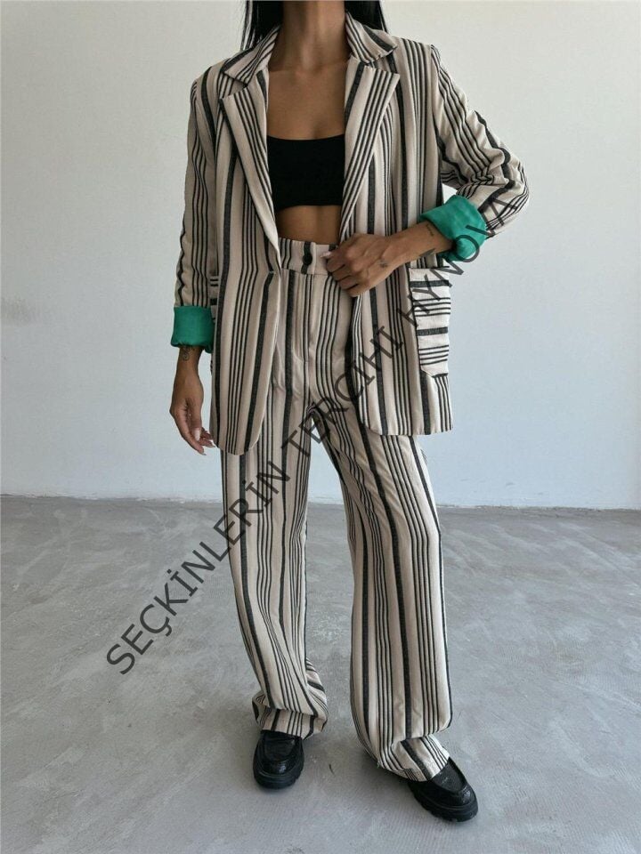 OTTOMAN ÇİZGİLİ CEKET-PANTOLON TK - Bej
