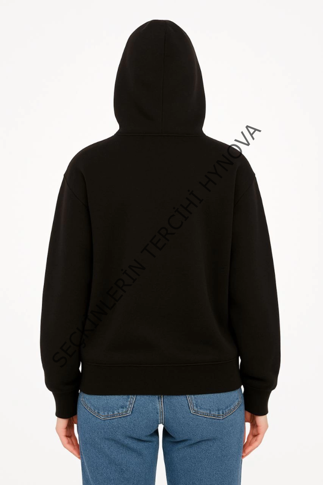 Oversize Kapüşonlu Sweatshirt Hoodie 3 İplik Şardonlu Pamuklu Kumaş, Önü Baskılı, Fermuarlı Rahat Kalıp, Kışlık Ve Sokak Stili Sweat - Siyah