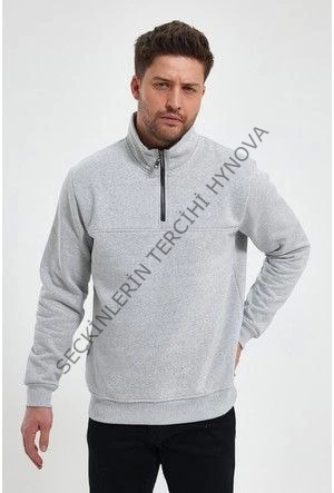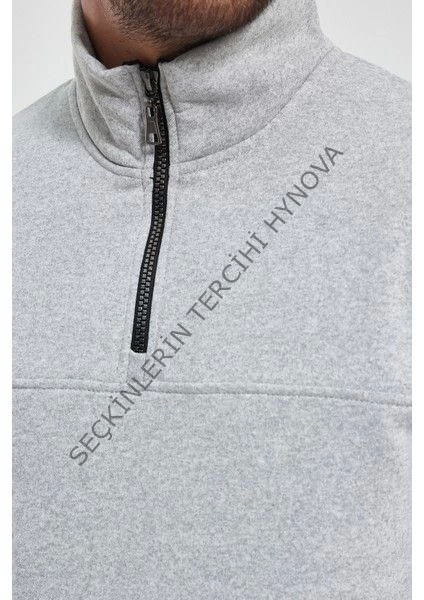 Oversize Yarım Farmuarlı Yakalı Basic SweatShirt - Gri