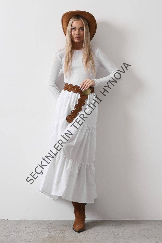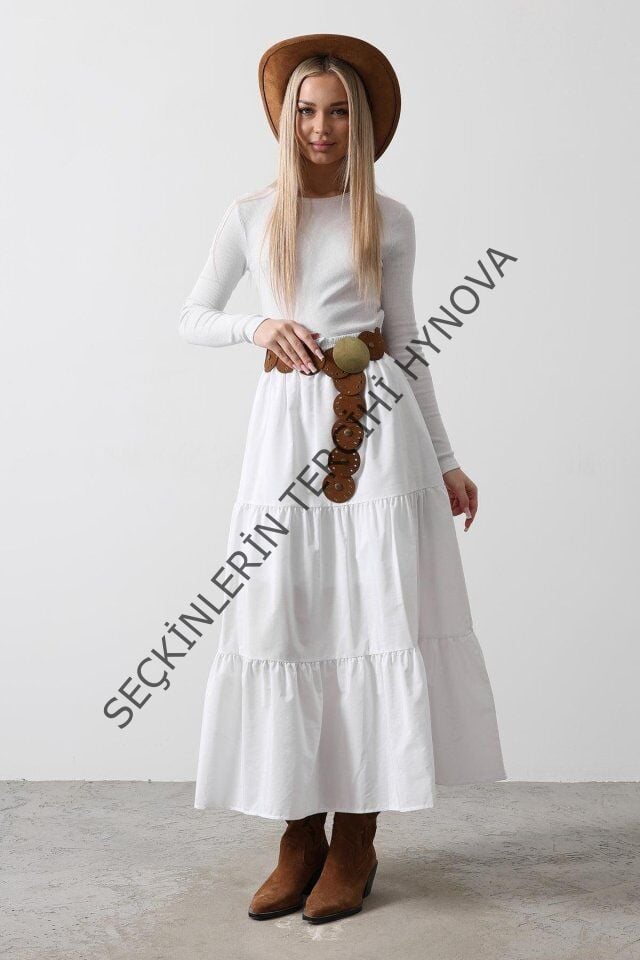 Pamuklu Beli Lastikli Etek - Beyaz