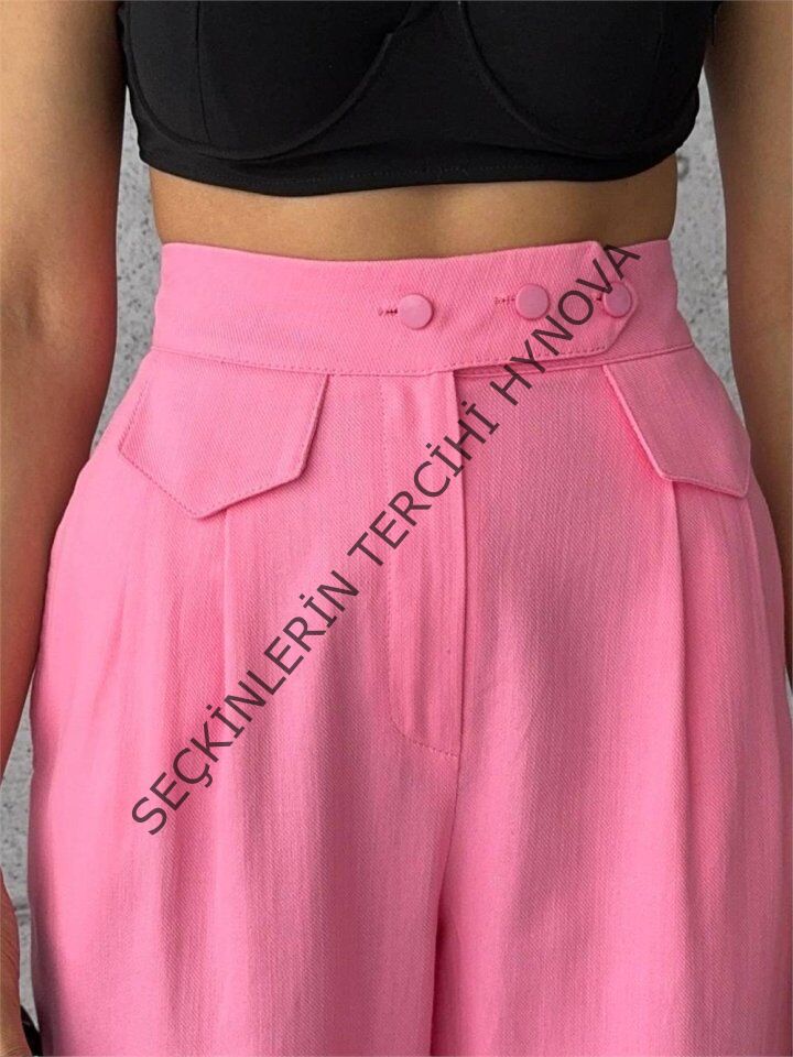 PANTOLON KAPALI CEP 3 DÜĞME DETAYLI - Pembe