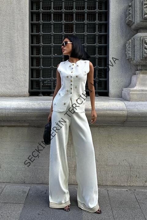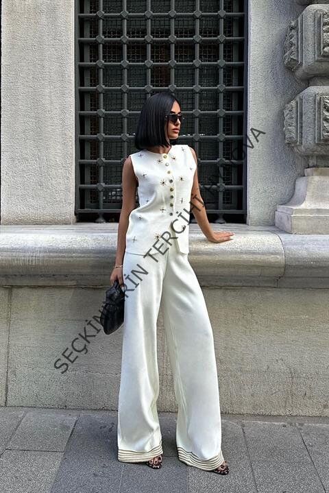 Paulo Gold Düğmeli Yelek Pantolon Takım 9976