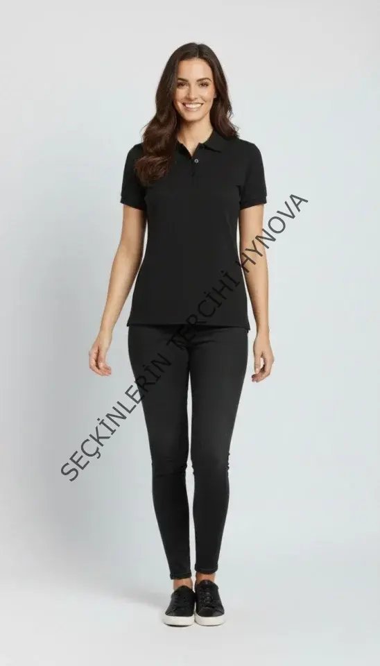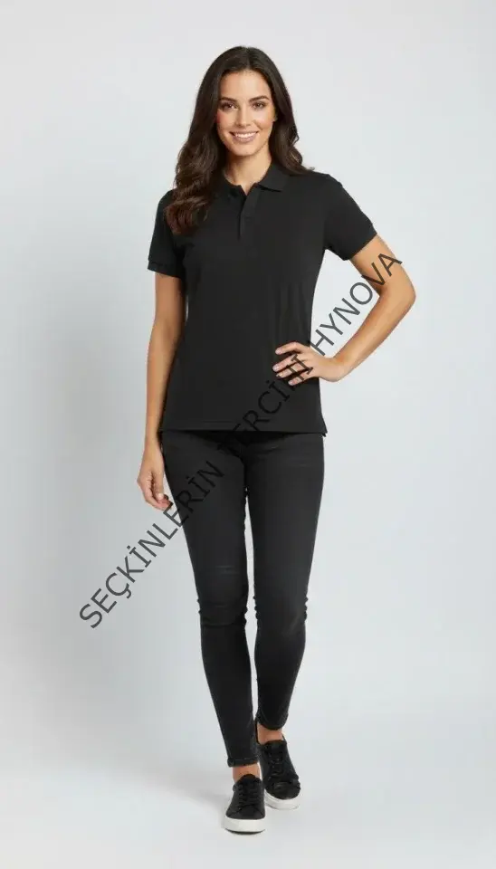 Pike Kumaş Düğmeli Yaka Regular Rahat Günlük Kısa Kol Tişört T-shirt - Siyah
