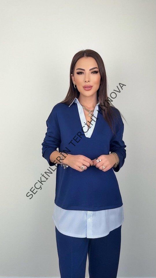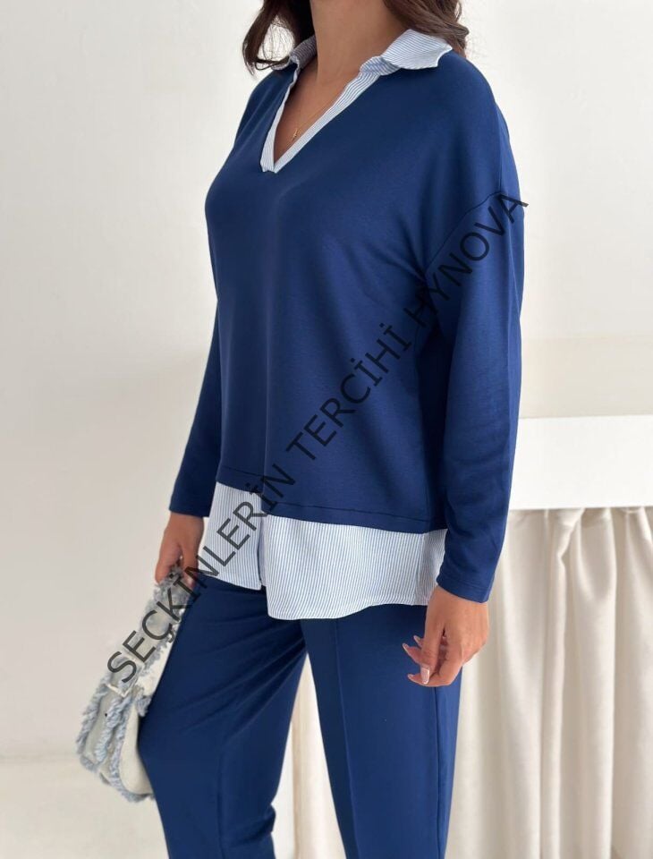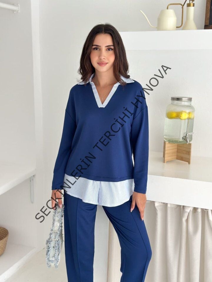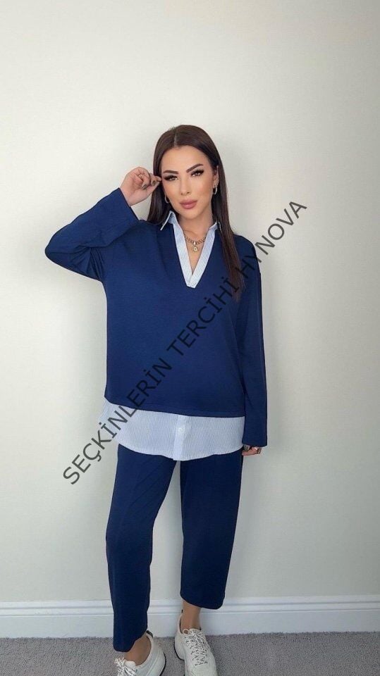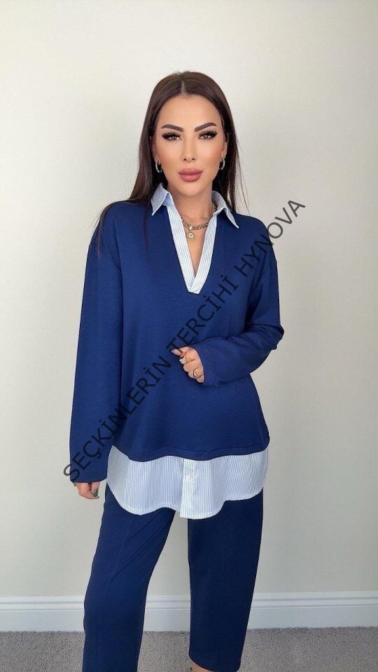 Polo Yaka Gömlekl Detay Salaş Balon Pantolunlu ıkılı Takım