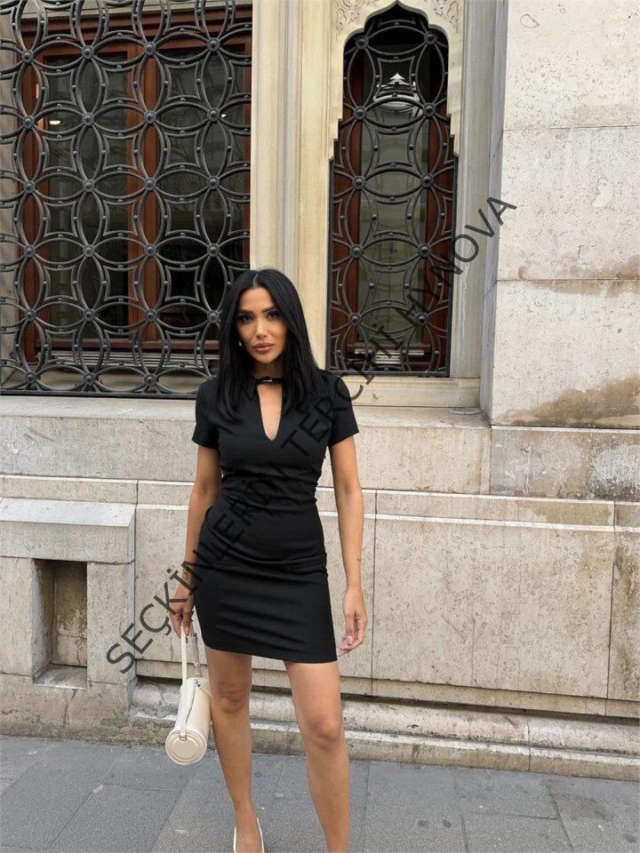 POLO YAKA YAKA KEMER DETAYLI KALEM ELBİSE - Siyah