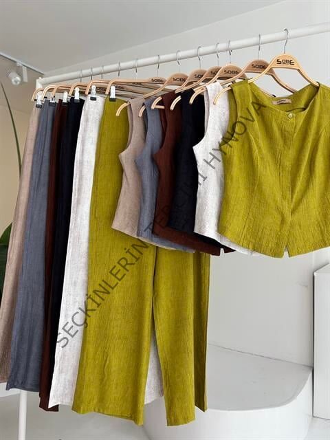 Sıfır Kollu Bluz Batik Desenli Pantolon İkili Takım 10181-08