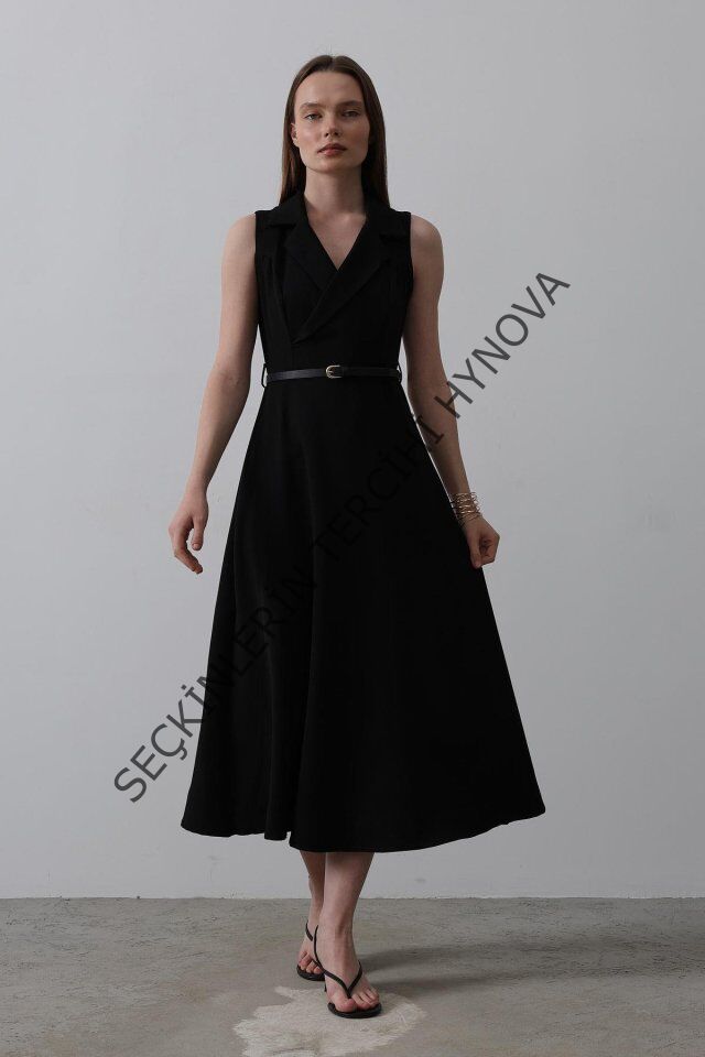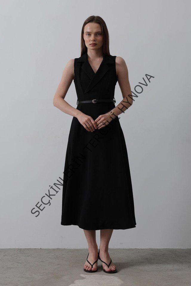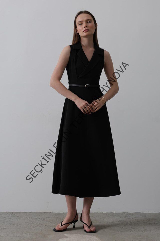 Sıfır Kollu Kemer Detaylı Elbise - Siyah