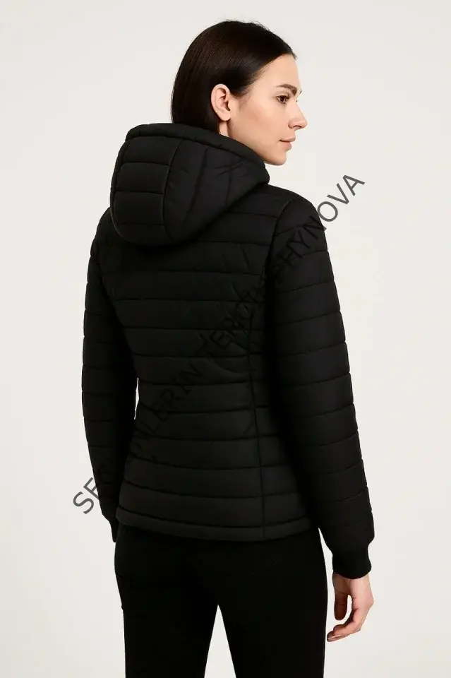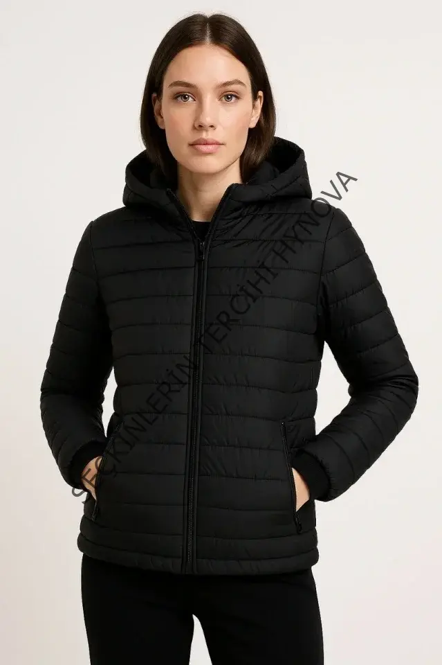 Şişme Kapüşonlu Fermuarlı Mont Su Itici Kapitone Astarlı Kumaş Cepli Kışlık Rahat Kalıp - Siyah