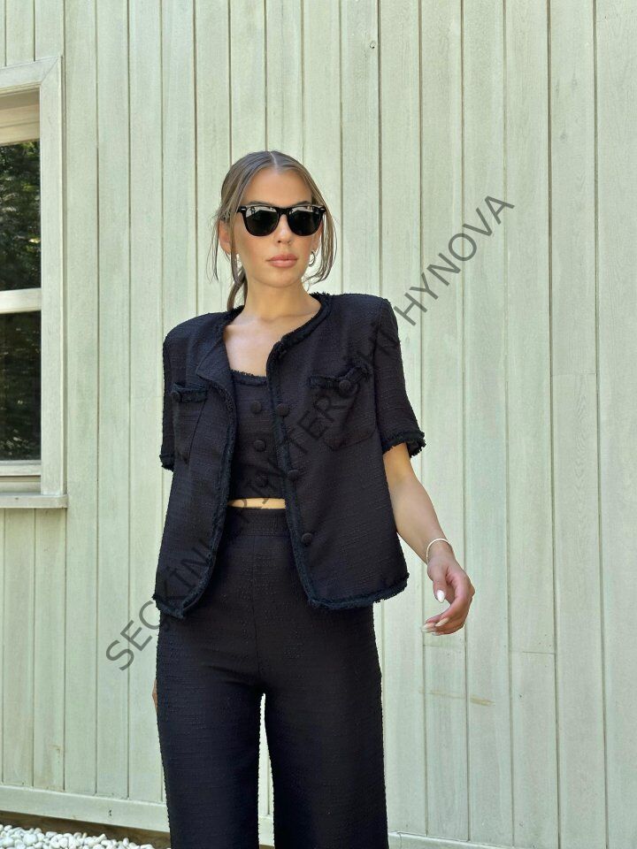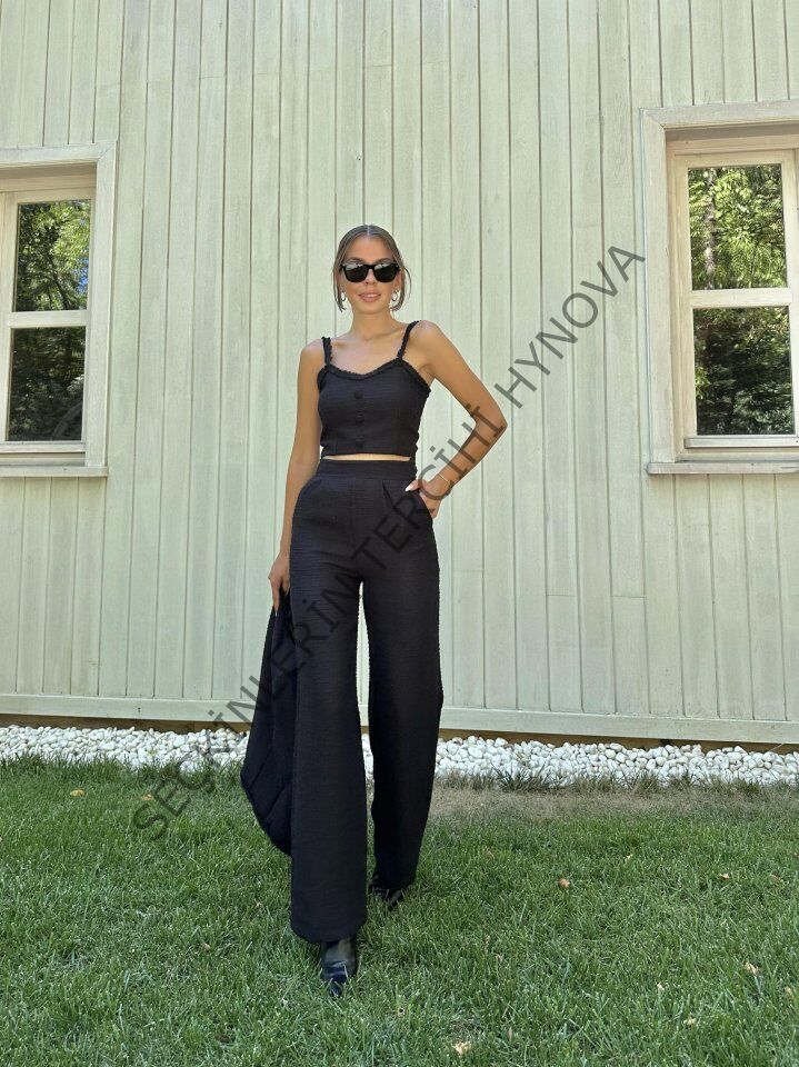 Siyah Askılı Büstiyer Ceket Ve Pantolon Takım