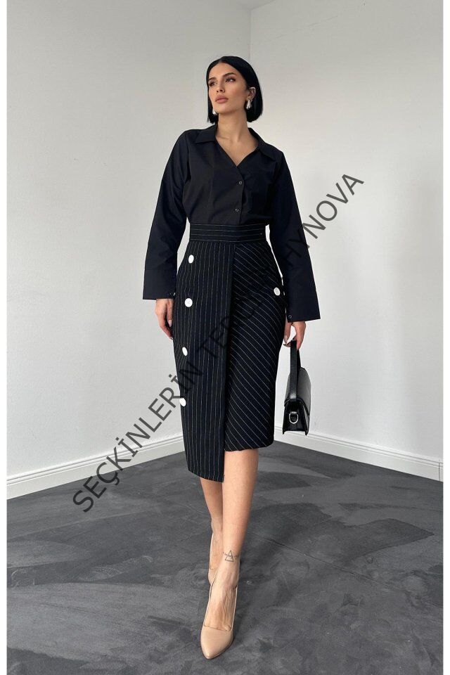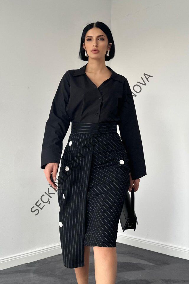 Siyah Çizgili Poliviskon Etek