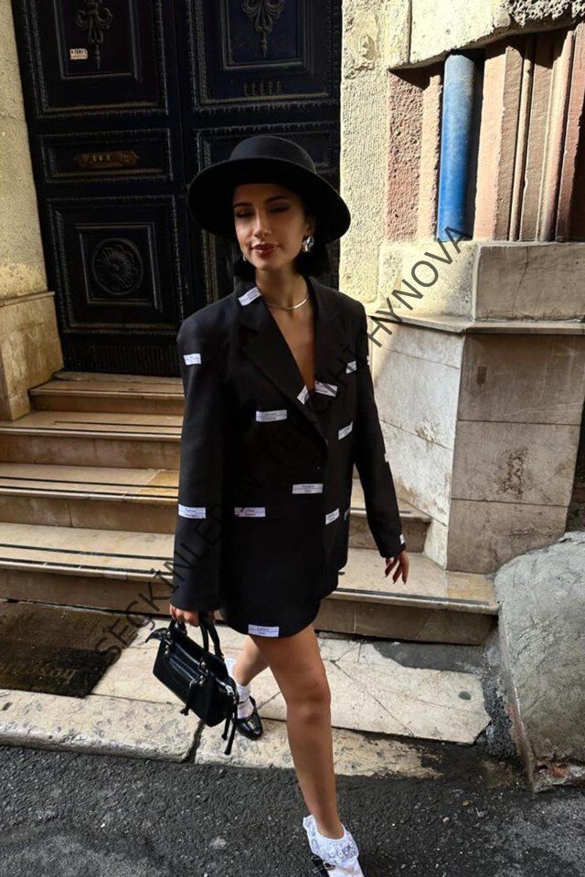 Siyah Etiket Detaylı Ceket