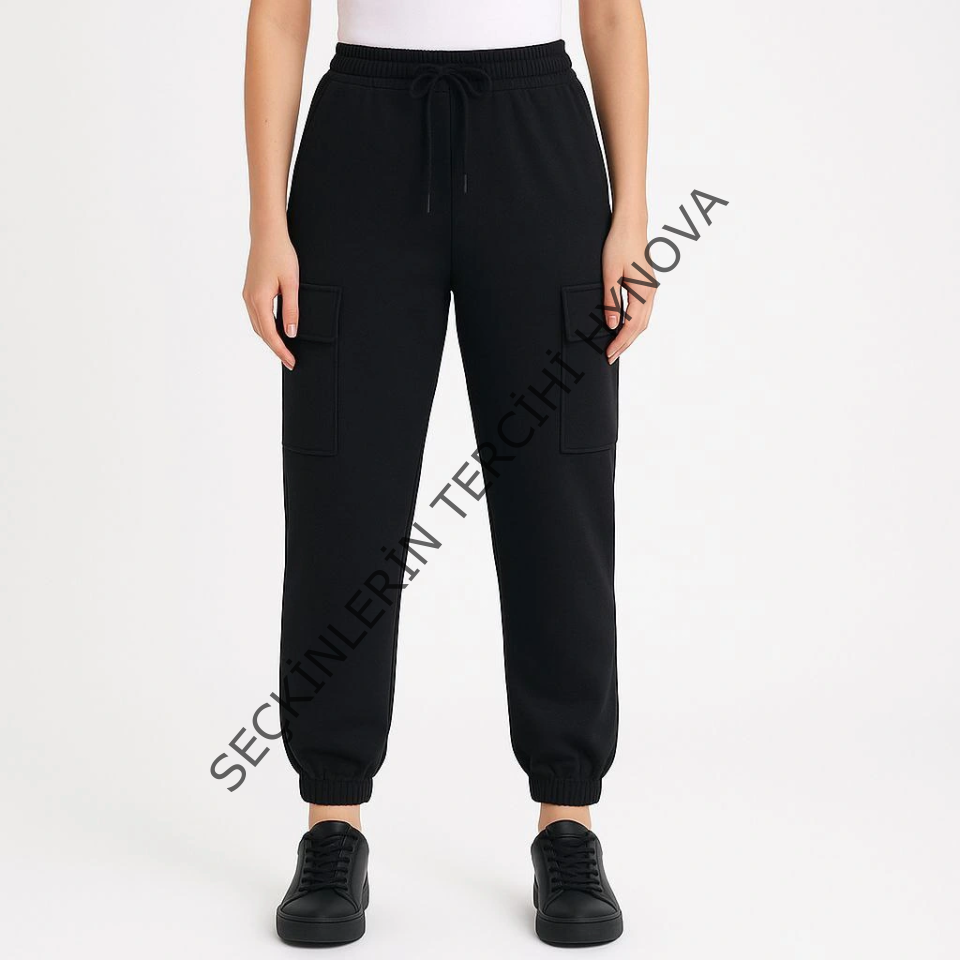 Siyah Jogger Eşofman Altı Rahat Kalıp, Kargo Cepli, Lastikli Paça, Günlük Spor Pantolon - Siyah