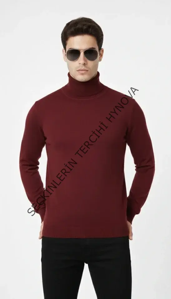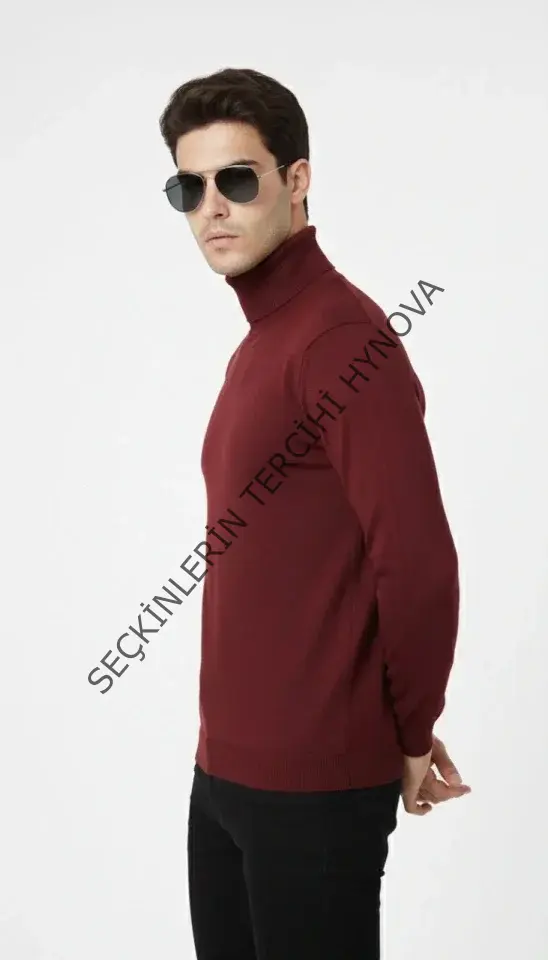 Tam Boğazlı Balıkcı Yaka Triko Kazak Yumuşak Dokulu Pamuklu Ince Dokuma, Uzun Kollu Rahat Regular Kalıp - Bordo