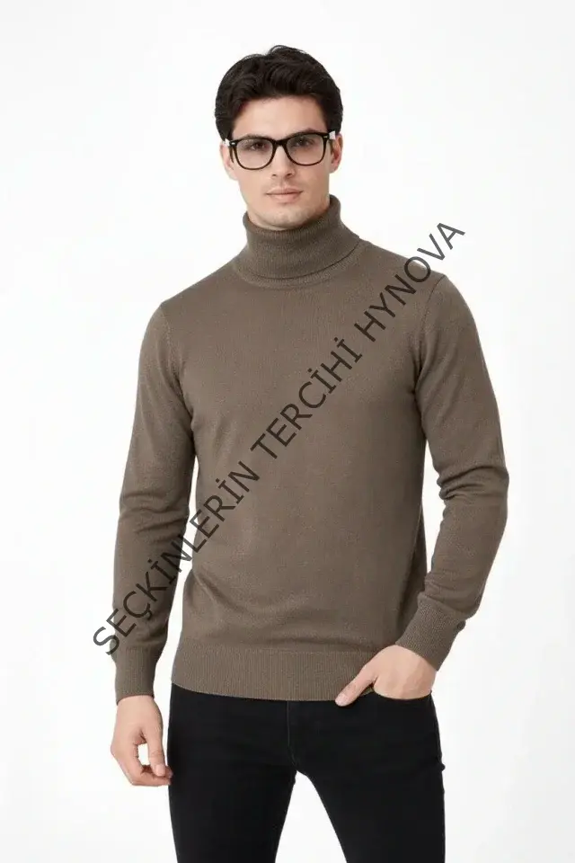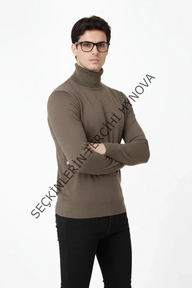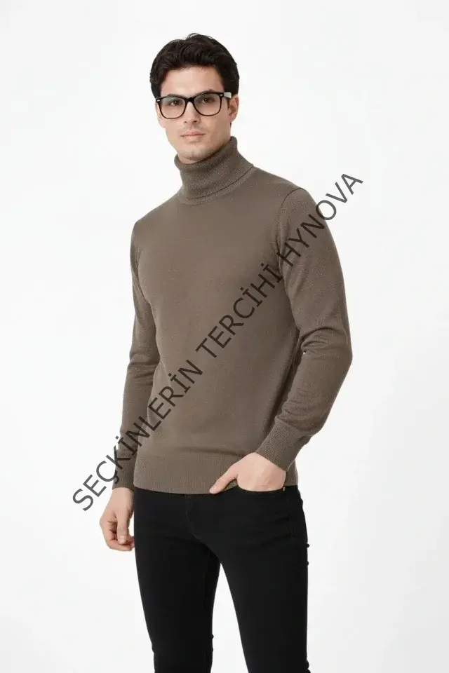 Tam Boğazlı Balıkcı Yaka Triko Kazak Yumuşak Dokulu Pamuklu Ince Dokuma, Uzun Kollu Rahat Regular Kalıp - Kahverengi