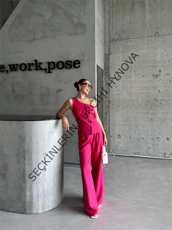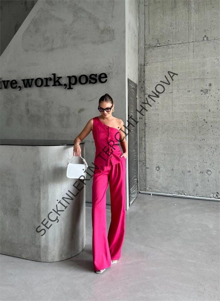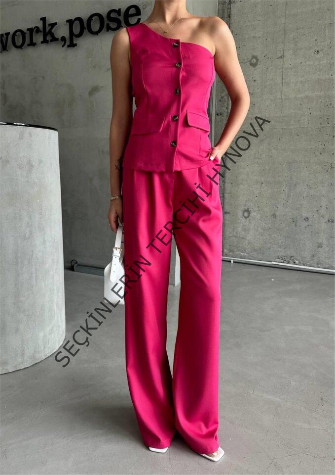 TEK KOL YELEK - PANTOLON TAKIM ATLAS - Fuşya
