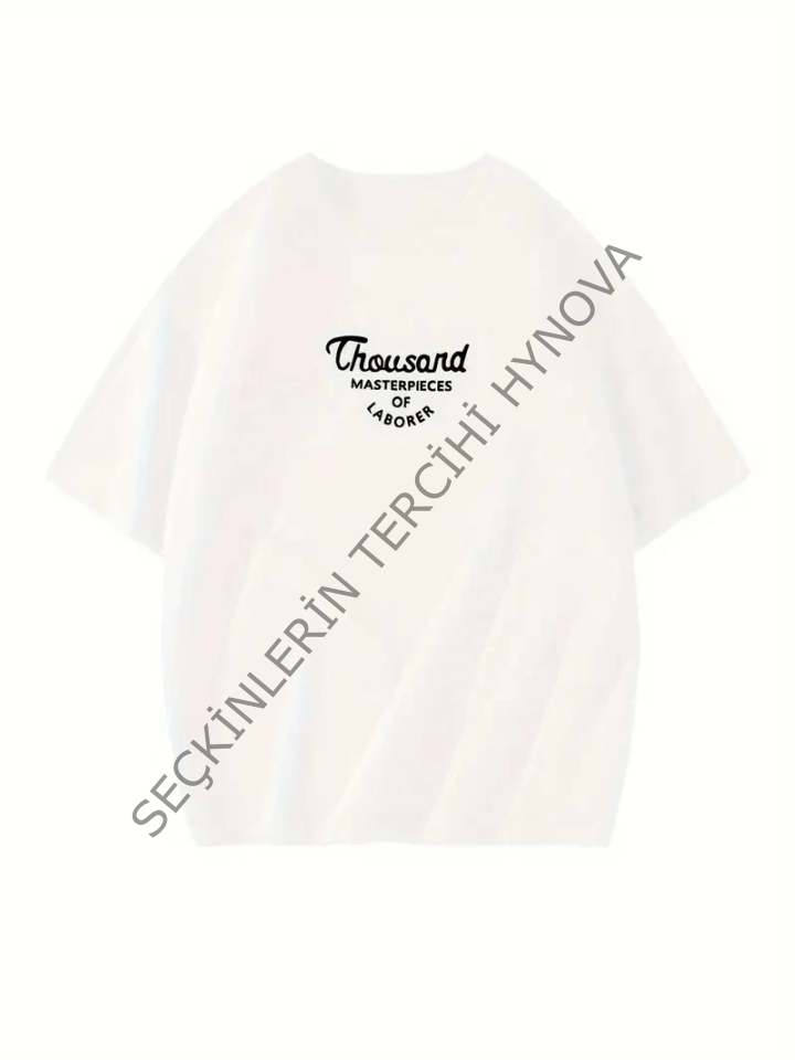 Thousand Baskılı Oversize Bisiklet Yaka T-shirt - Beyaz