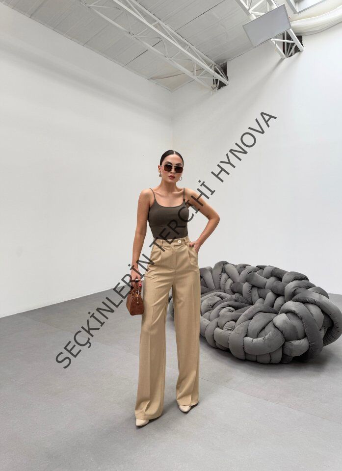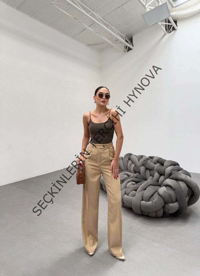 Trio Arka Bel Lasti̇k Detayli Palazzo Pantolon