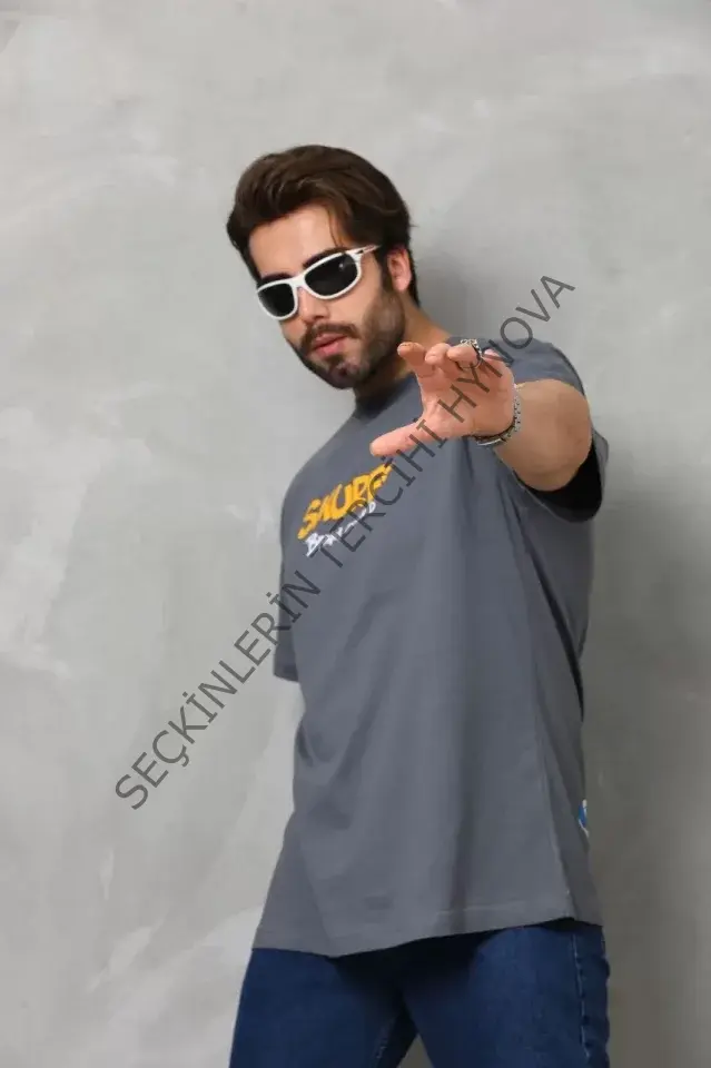 Unisex Basic Bisiklet Yaka Oversize T-Shirt - Füme