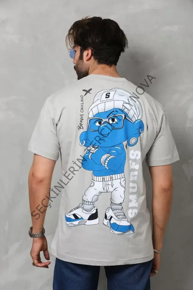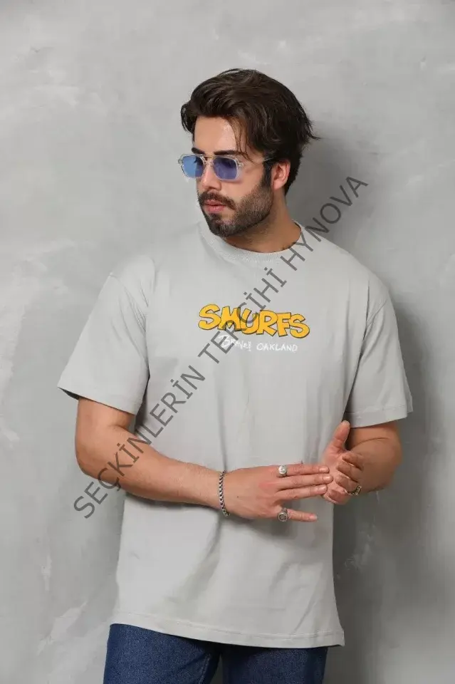Unisex Basic Bisiklet Yaka Oversize T-Shirt - Gri