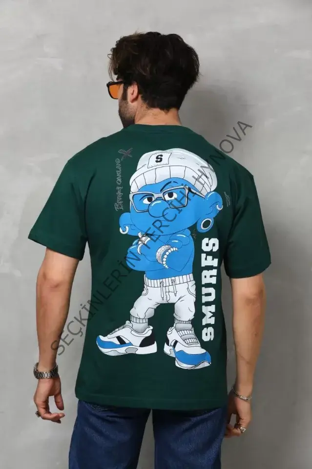 Unisex Basic Bisiklet Yaka Oversize T-Shirt - Yeşil