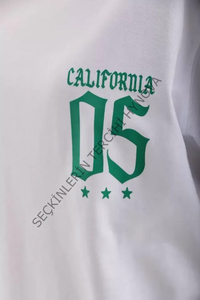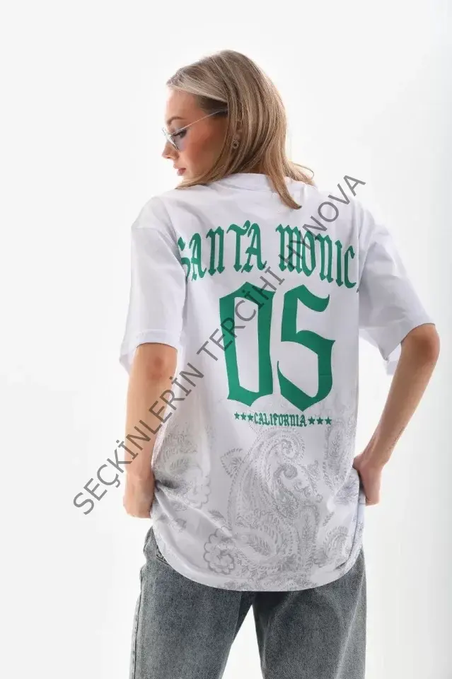 Unisex Baskılı Oversize T-Shirt - Beyaz