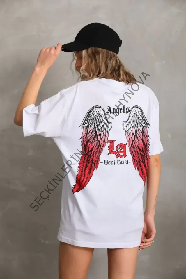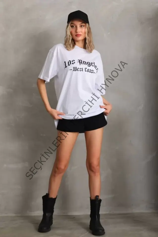Unisex Baskılı Oversize T-Shirt - Beyaz 96252