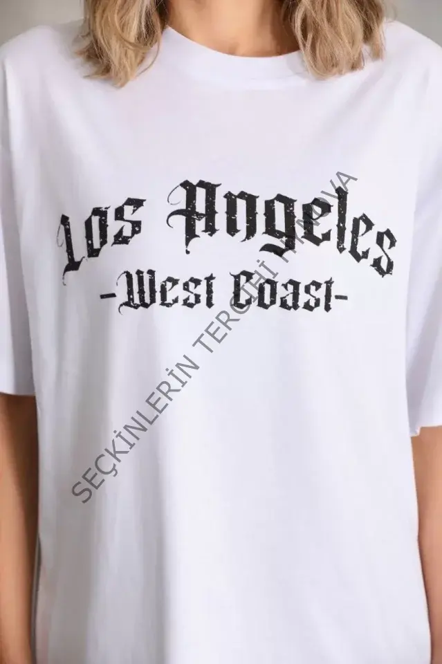 Unisex Baskılı Oversize T-Shirt - Beyaz