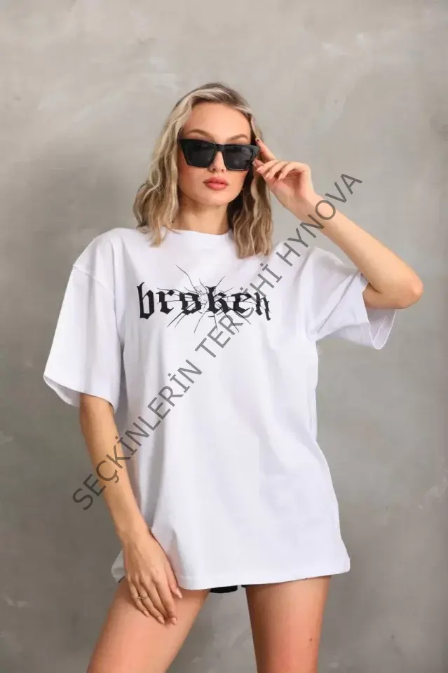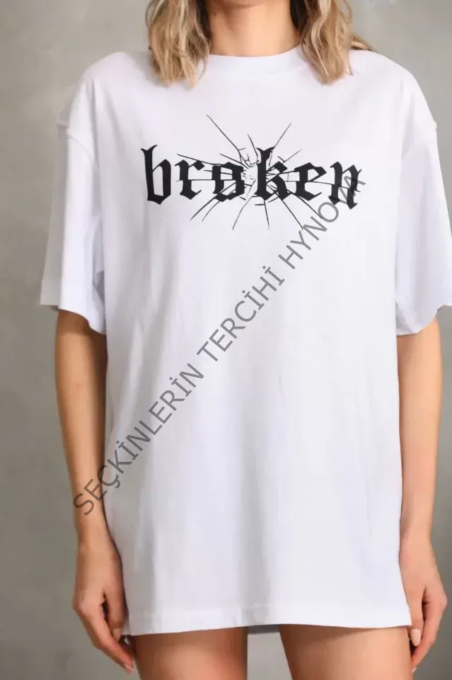 Unisex Baskılı Oversize T-Shirt - Beyaz 96248