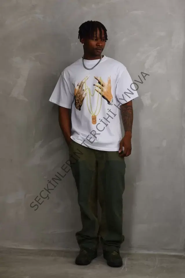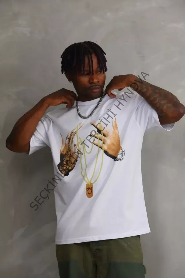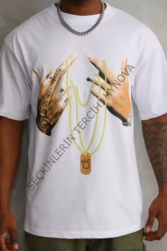 Unisex Baskılı Oversize T-Shirt - Beyaz 98647