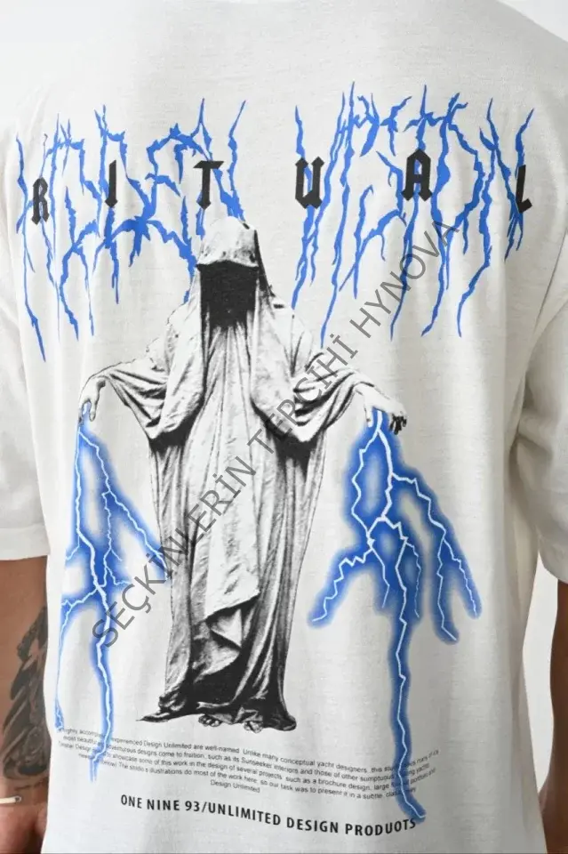 Unisex Baskılı Oversize T-Shirt - Beyaz