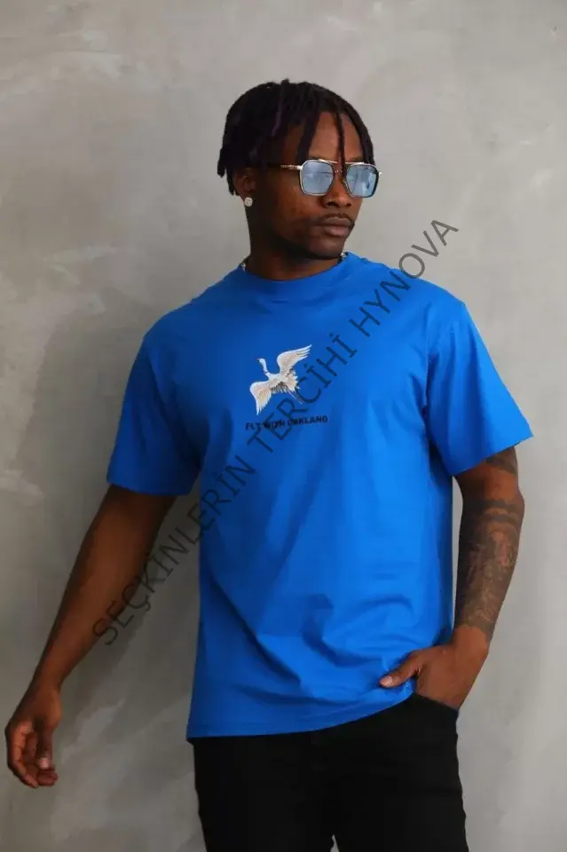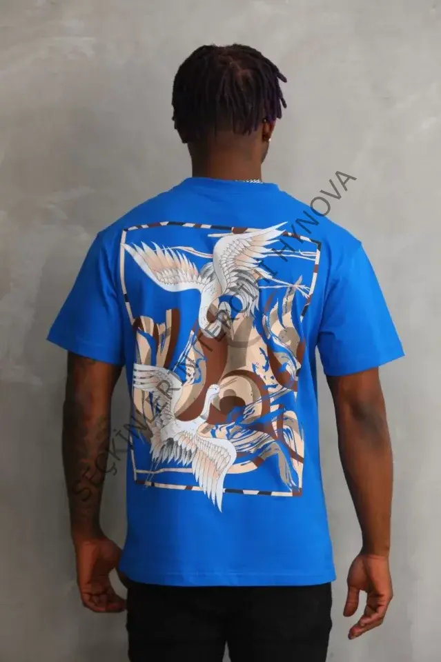 Unisex Baskılı Oversize T-Shirt - Mavi