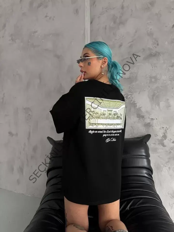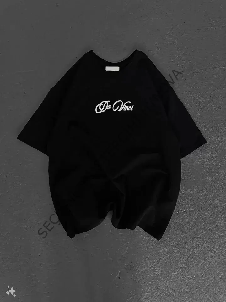 Unisex Baskılı Oversize T-Shirt - Siyah