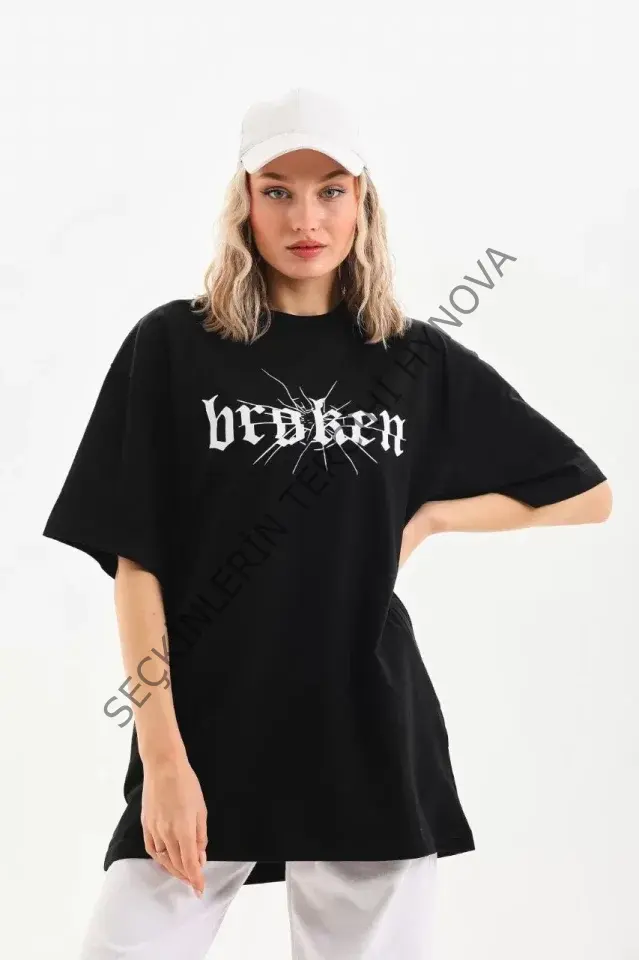 Unisex Baskılı Oversize T-Shirt - Siyah 96247