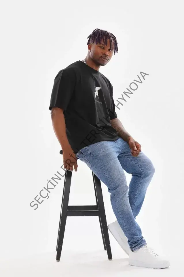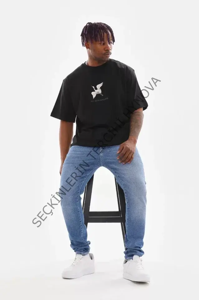 Unisex Baskılı Oversize T-Shirt - Siyah 98653