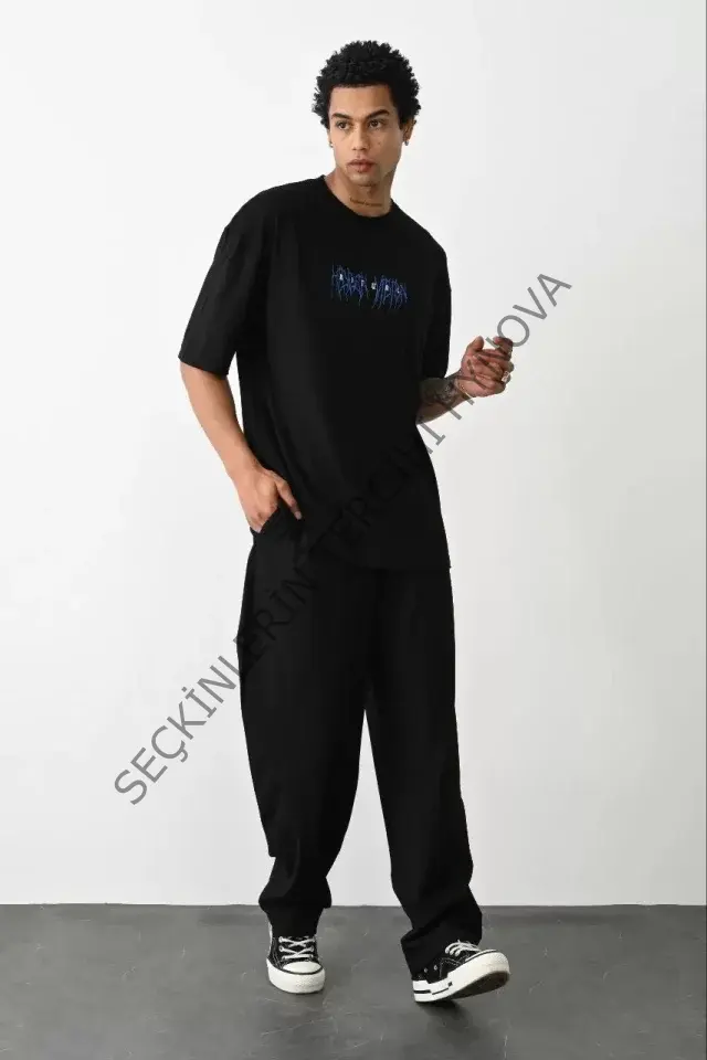 Unisex Baskılı Oversize T-Shirt - Siyah 100235
