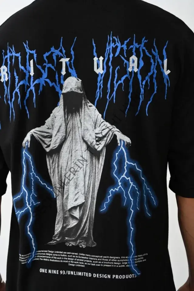 Unisex Baskılı Oversize T-Shirt - Siyah
