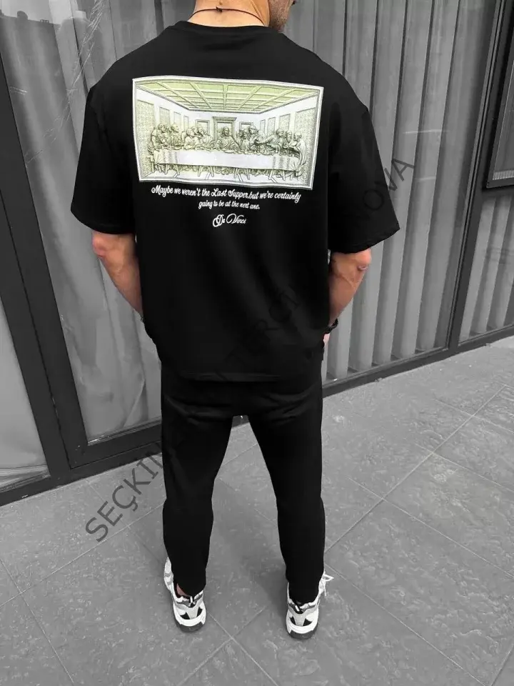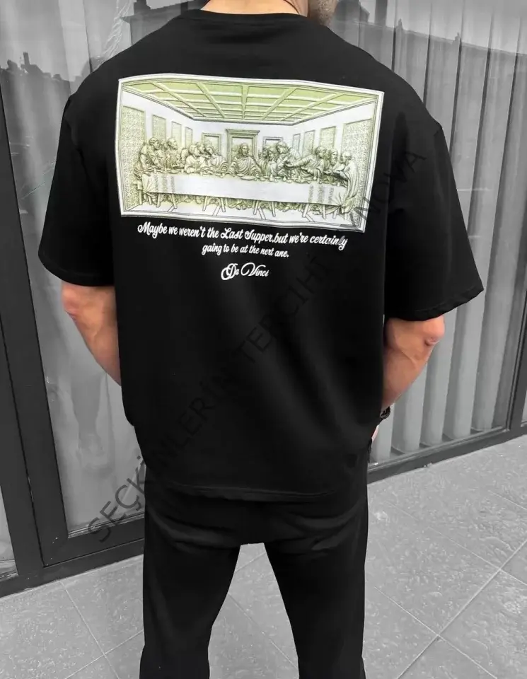 Unisex Baskılı Oversize T-Shirt - Siyah