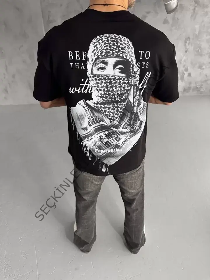 Unisex Baskılı Oversize T-Shirt - Siyah