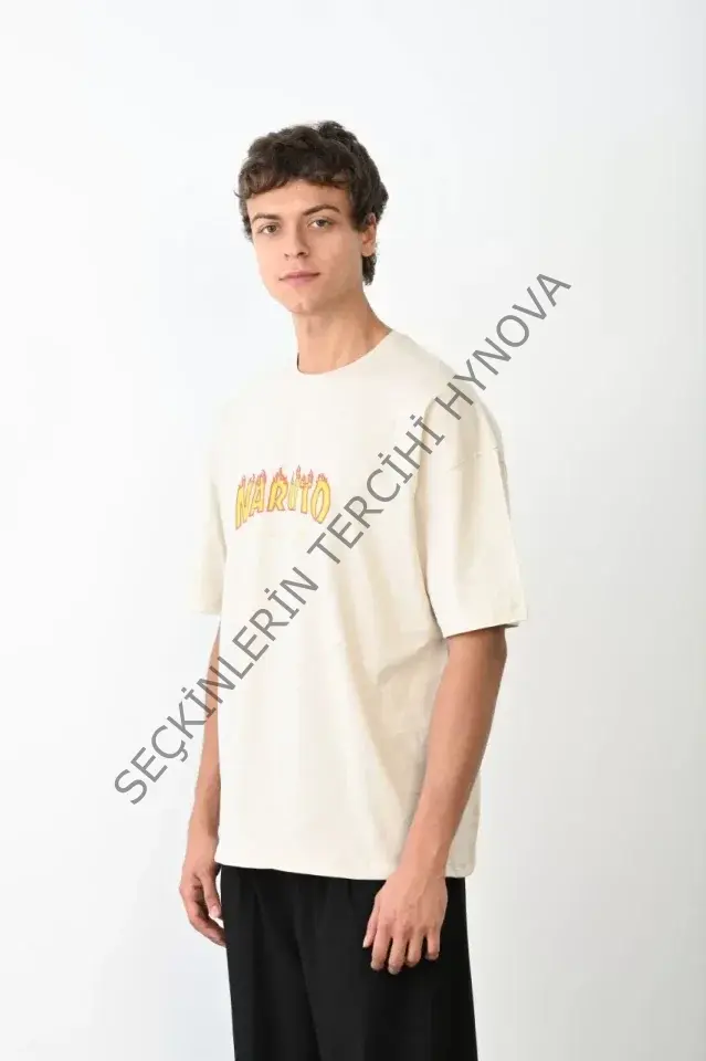 Unisex Bisiklet Yaka Baskılı Oversize T-Shirt - Beyaz 104377