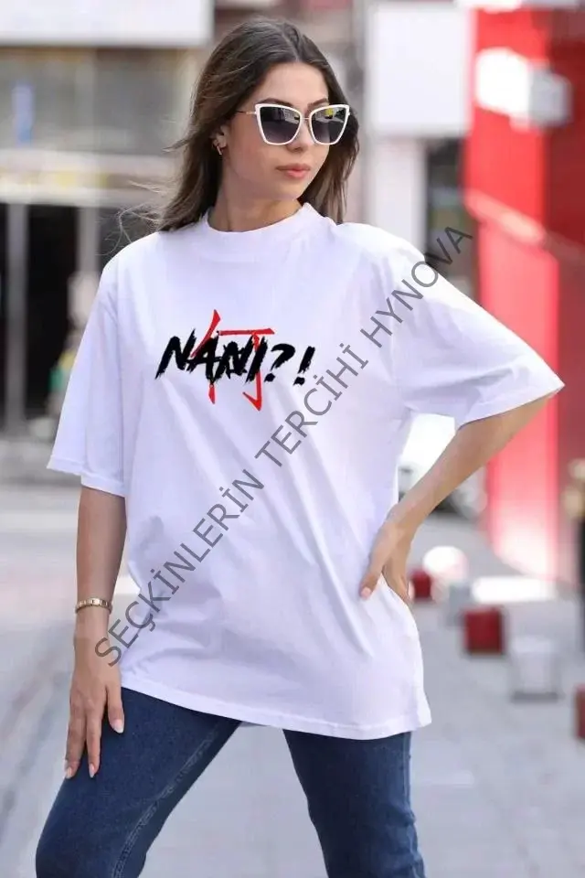 Unisex Bisiklet Yaka Baskılı Oversize T-Shirt - Beyaz 104333