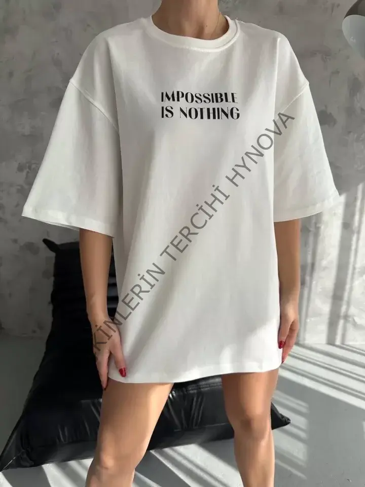 Unisex Bisiklet Yaka Baskılı Oversize T-Shirt - Beyaz 102537