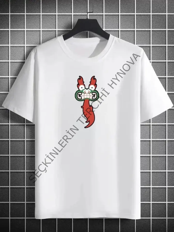 Unisex Bisiklet Yaka Baskılı Oversize T-Shirt - Beyaz 124172
