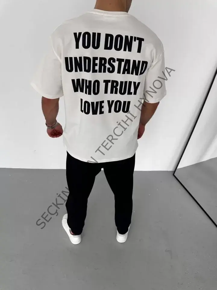 Unisex Bisiklet Yaka Baskılı Oversize T-Shirt - Beyaz 106725