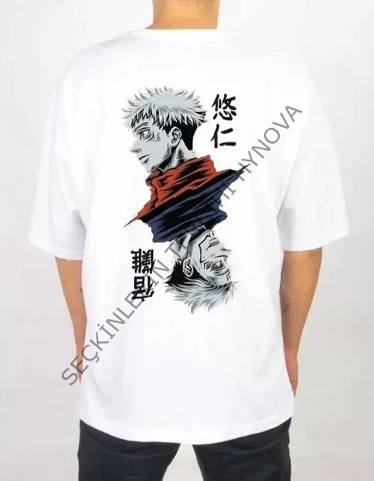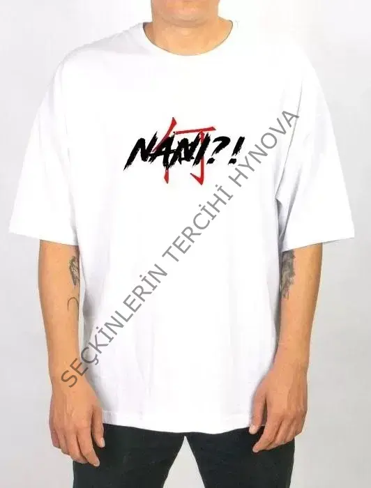 Unisex Bisiklet Yaka Baskılı Oversize T-Shirt - Beyaz 104401