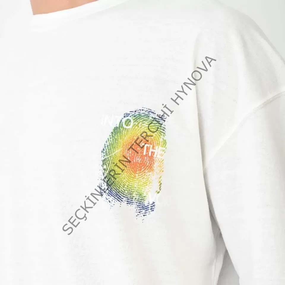 Unisex Bisiklet Yaka Baskılı Oversize T-Shirt - Beyaz