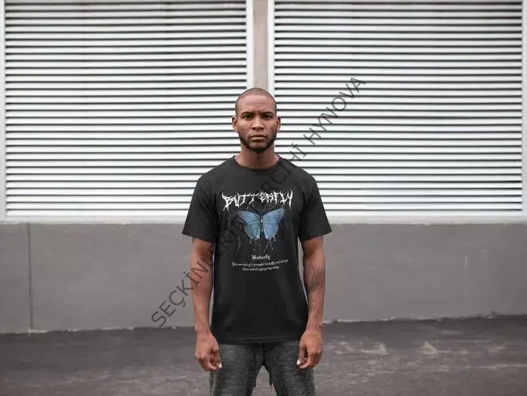 Unisex Bisiklet Yaka Baskılı Oversize T-Shirt - Siyah