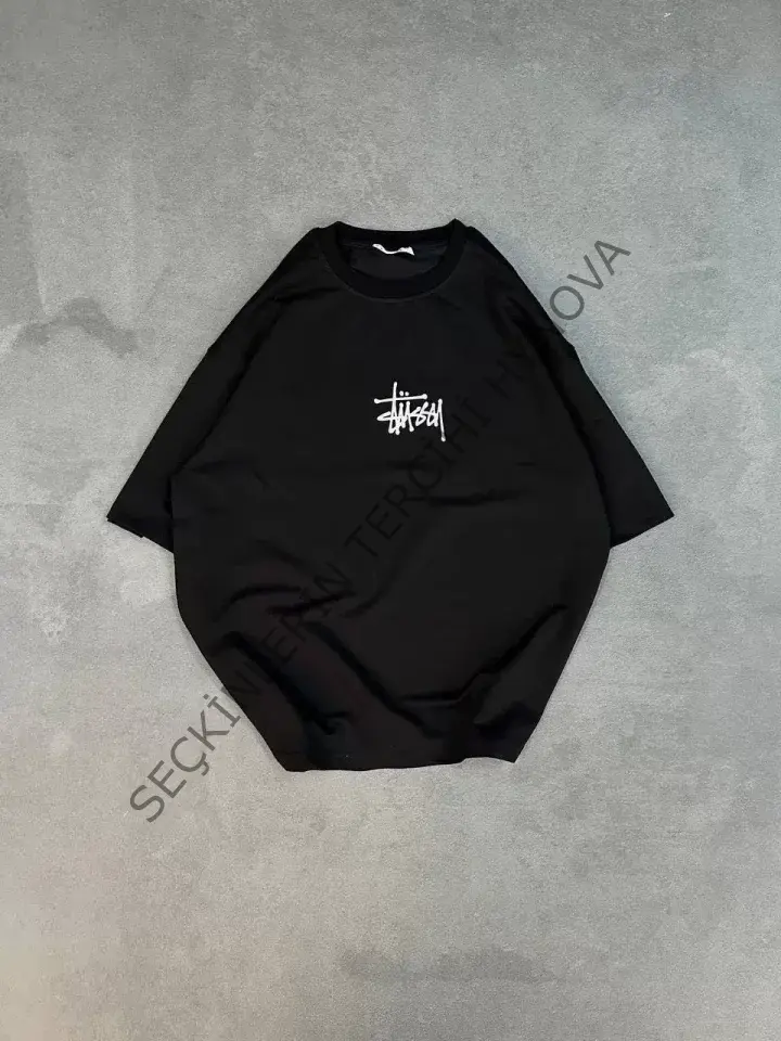Unisex Bisiklet Yaka Baskılı Oversize T-Shirt - Siyah
