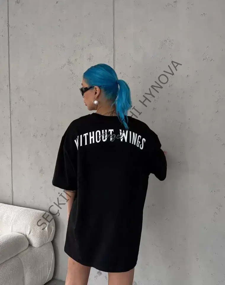 Unisex Bisiklet Yaka Baskılı Oversize T-Shirt - Siyah 103548